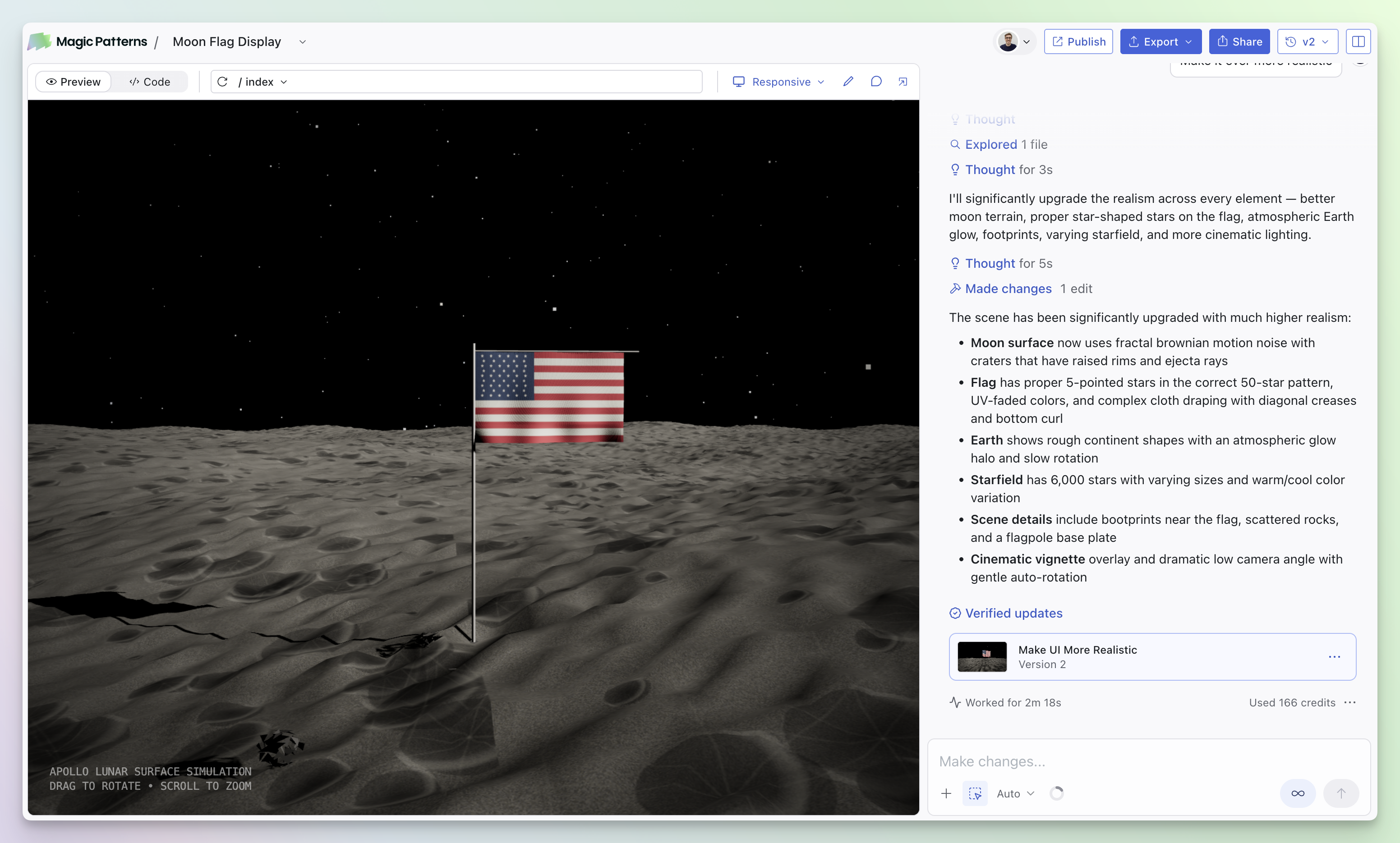 We’re introducing a new credit system, on-demand usage with pay-as-you-go billing, and restructured pricing plans. These changes take effect on Friday, March 20, 2026. Emails have been sent to all existing customers.For existing customers, you’ll be automatically upgraded to a new equivalent plan at no additional cost. Your current pricing will be honored through June 30, 2026 or until your next renewal if you’re on an annual plan.Read the full details here. If you have any questions, we’re here to help. Feel free to reach out to our support team at support@magicpatterns.com or use our in-app chat.New MCP Tools